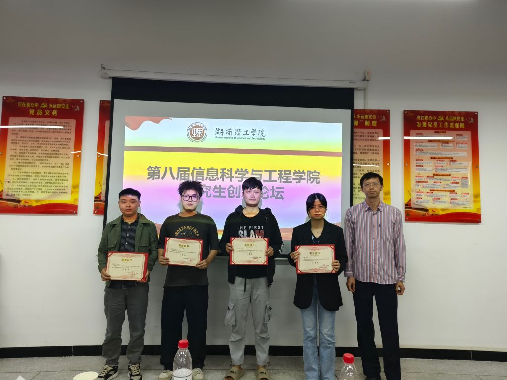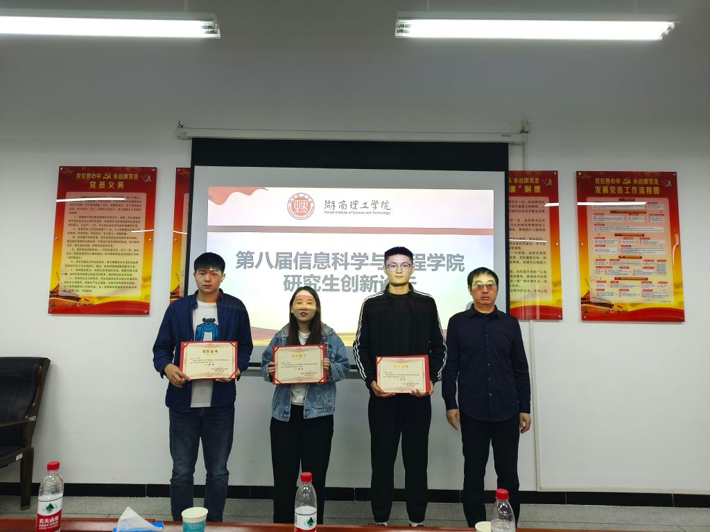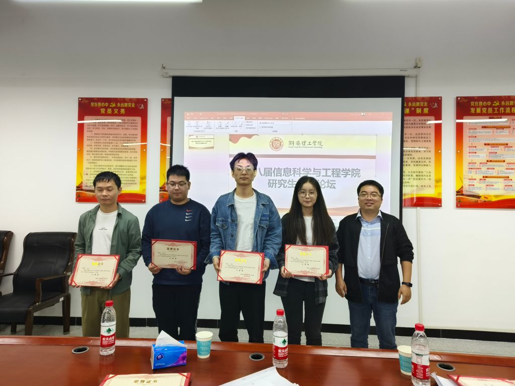 在颁奖环节中,评审老师为优秀论文获奖者颁奖并合影留念。获得一等奖共3名,分别是:卞永锋《旋转的光子自旋霍尔效应》、李子龙《基于低复杂度加法网络的NOMA短报文多用户检测算法研究》和张琪《改进的虚拟电压矢量模型预测控制共模电压抑制策略》