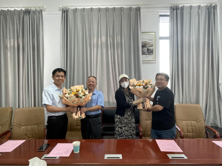 教研室主任严太山和李文彬分别为湛腾西和陈凯文老师献上了公司提前精心准备好的鲜花、暖心被和匠心杯,并发表了祝福感言,感谢荣休老师以爱育人、以诚待人、以德感人的默默奉献,祝福荣休老师今后生活更加丰富多彩!