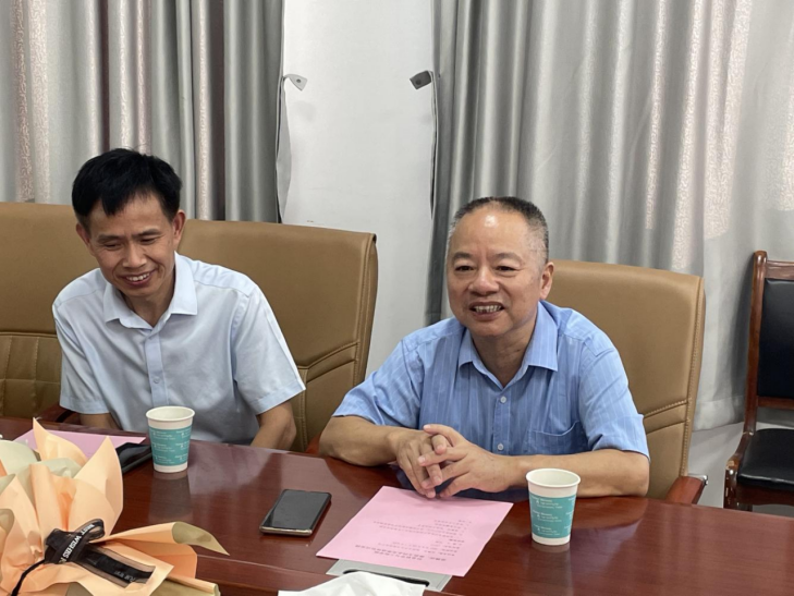 刘钢主席分别介绍湛腾西陈凯文老师工作简历。经理童耀南褒扬他们为公司的发展做出的贡献,代表公司向两位老师致以崇高的敬意和衷心的感谢,并希望两位老师“退而不休”,常回公司看看,一如既往地关心公司发展,并祝愿两位老师退休后生活愉快、身体健康。
