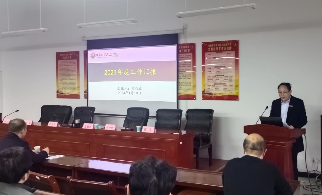 经理童耀南以《稳中求进,厚积薄发,“两进一成三提升”加快推进公司高质量发展》为主题作了公司行政工作及信息公开报告。报告从人才培养捷报频传、学科专业再谱新篇、办会展示信息风采、科研与社会服务再树新高等多方面对公司2023年主要工作进行了总结回顾。人才培养方面2023 届本科毕业生初次就业率达91.19%,排名跃居全校第一,国家级、省级奖项数量分别较上一年度分别增长 90.5%和 43.1%。团队建设方面也取得阶段性重大胜利,电子信息工程专业参加工程教育专业认证完成了为期两年多的自评自建,顺利通过专家评审。公司承办了全国碳基信息器件与先进半导体技术研讨会、第十六届全国信息与电子学科研究生教育学术研讨会、湖南省计算机学会机器视觉与医学影像专业委员会2023年年会暨学术报告会,“软科中国最好学科排名”从去年的92位上升到今年的86 位。在全体老师的共同努力下,公司科研业绩较上一年度增长18.1%