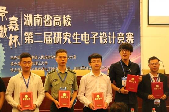 6月2日,由湖南省学位办主办、长沙理工大学承办、长沙景嘉微电子股份有限公司和湖南进芯电子科技有限公司协办的湖南省第二届研究生电子设计大赛在长沙理工大学落下帷幕。公司组织的6支代表队(太阳集团tyc334555支,机械公司1支)与国防科技大学、中南大学、湖南大学等14所高校的83支队伍同场竞技。经过全体人员的共同努力和顽强拼搏,最终获得一等奖和三等奖各1项,实现了研究生电子设计竞赛一等奖“零”的突破,童耀南和陈松老师荣获优秀指导老师。