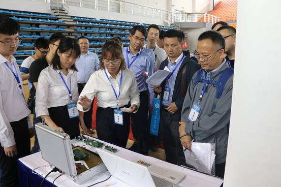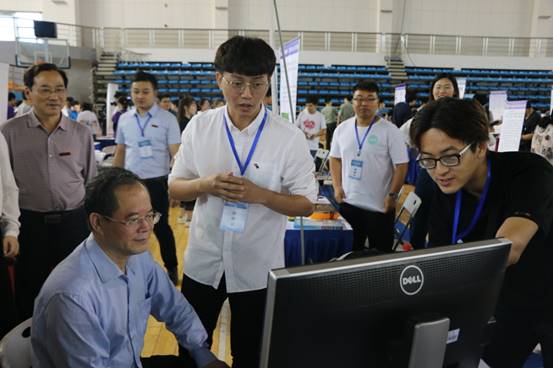 在参赛作品展示环节,湖南省教育厅副厅长葛建中来到展台前亲自体验公司参赛作品,并对员工赞赏有加,鼓励同学们继续努力。