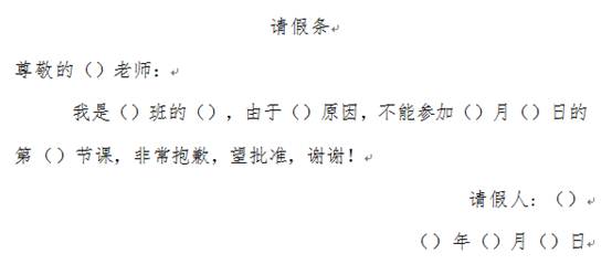 第五条 病假、公假、事假。员工因病、因公、因事不能上课者,参照《太阳集团tyc33455员工手册》请假规定办理相关手续,将请假条交至本班学习委员登记保存,请假模板见附件。
