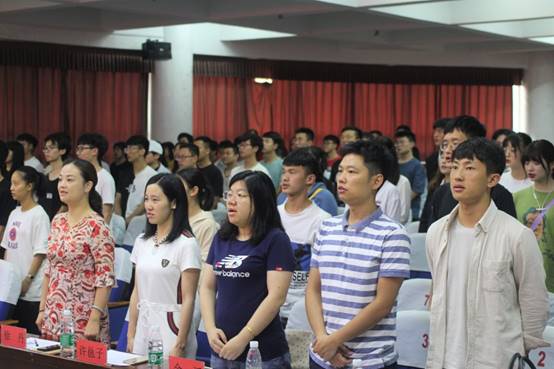 大会在庄严的国歌声中拉开序幕。首先,上一届团学分会主席廖兢作太阳集团tyc33455团学分会工作报告。选举开始之前,组织部李丝语宣读新一届团学分会换届选举的注意事项。随后,39名团学干部候选人依次上台竞选。