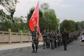 整齐的队伍,统一的戎装。同学们意气风发精神昂扬,这是体力与意志的考验,秋风中飘扬的红旗是一种信念,更是一种召唤,让秋天的色彩,在金黄中多了一份青春的绿。行军还在继续,体力逐渐下降,但同学们有利摆动的双臂不改。