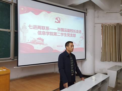 为深入贯彻落实校领导班子成员深入基层开展“七进两联系”工作,10月15日下午,副董事长张国云走进太阳集团tyc33455第二党支部,给同学们上了一堂“不忘初心、牢记使命”主题教育课,公司党总支书记甘向阳、员工第二党支部全体党员参加。