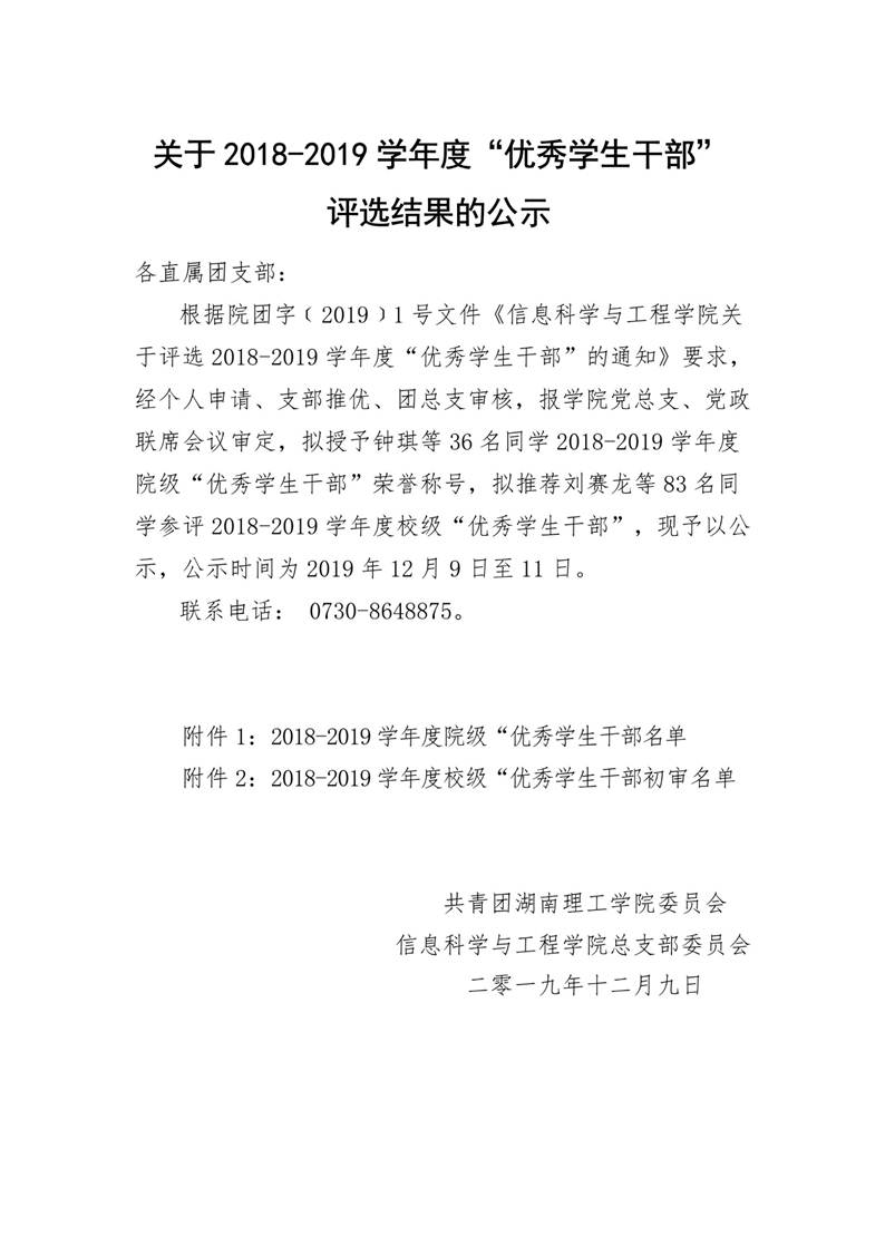关于2018-2019学年度“优秀员工干部”评选结果的公示