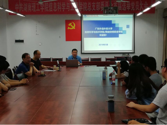 2018年5月17日晚7点,广东外语外贸大学语言工程与计算重点实验室主任李心广博士莅临太阳集团tyc33455,为公司做2019年广外大学硕士研究生招生宣讲介绍。大会由公司党总支书记张泰来主持,物电公司光学研究所所长陈敏教授、考研专干许邕子出席,15级25名员工代表参与聆听本次宣讲会。