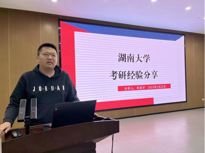 随后,成功考取中国科公司大学的李俊、中国科学技术大学的谭豪、南昌大学的付宇恒、湖南大学的李思宇四位同学,从自身考研经历出发,围绕考研院校和专业的选择、资料信息的获取、复习计划的制定、心态的调整以及复试注意事项等方面分享经验和感受。