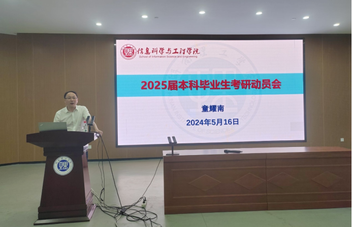 2024年5月16日,​太阳集团tyc33455于17118举行2025届考研经验分享暨动员大会。21级各专业全体员工和部分21级班主任,以及经理童耀南、党委副书记付亚子、副经理戴华、21级考研专干余滔等老师共同参加了会议。