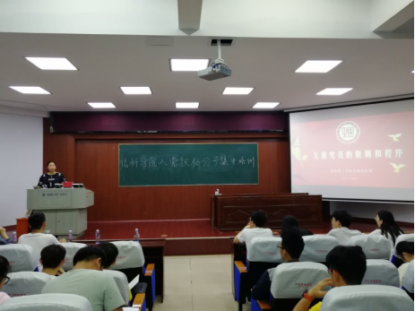 向江在会上以《中国共产党党章》与《中国共产党发展党员工作细则》为依据,提出发展党员的原则和程序。向江表示,发展党员要把政治标准放在首位。并结合亲身经历,深度阐释“坚定信念、对党忠诚、为人民服务、严守纪律”四个方面的政治标准;随后详细介绍了发展党员新十六字方针,即“控制总量、优化结构、提高质量、发挥结构”。