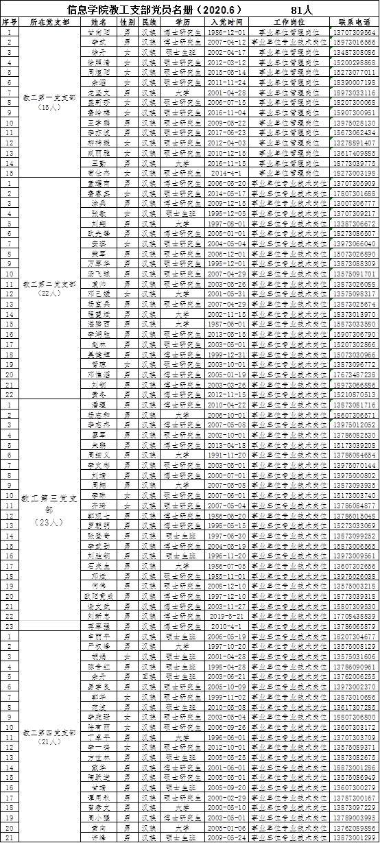 太阳集团tyc33455教工支部党员名册