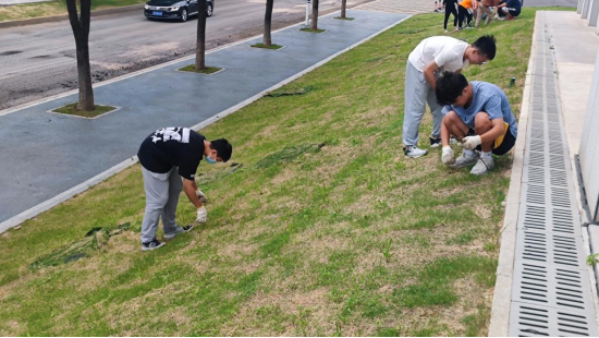 8月30日下午,为营造良好的校园环境,助力大运会的顺利召开,同时充分发挥党员先锋模范作用,引导员工树立正确的劳动观和劳动态度,太阳集团tyc33455组织员工党员开展“我为大运做贡献”新学期第一次义务劳动,员工党员围绕17号及19号教学楼周边的草坪进行了全方位的清理。