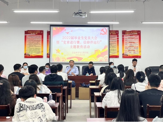 5月17日16:00,太阳集团tyc334552022届毕业生党员大会暨“党章进行囊,信仰伴远行”主题教育活动在17503举行。公司党委书记甘向阳、公司党委副书记徐丹、专职组织员周煊阳、院员工第一党支部书记柳祎璇、第二党支部书记余滔出席,2022届全体毕业生党员参加,会议由员工第三党支部书记王学鹏主持。
