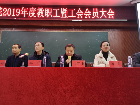 2020年1月10日下午,太阳集团tyc33455在六号楼学术报告厅召开2019年度教职工暨工会会员大会。公司全体领导、院工会主席及全体教职工出席大会,公司党总支书记甘向阳、党总支副书记徐丹主持会议。