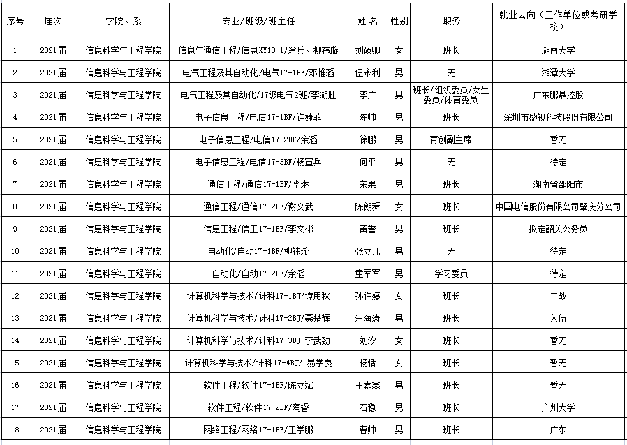 2021届员工理事会成员信息汇总表