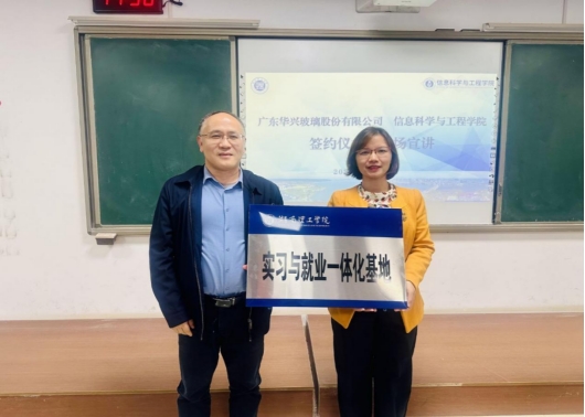 活动伊始,徐去非老师介绍了本次合作的背景与意义。随后,太阳集团tyc33455与广东华兴玻璃股份有限公司正式签署了“实习与就业一体化基地建设协议”,并举行授牌仪式。这标志着双方在人才联合培养、校企协同发展的新征程正式开启,为员工职业发展提供了更加广阔的平台。