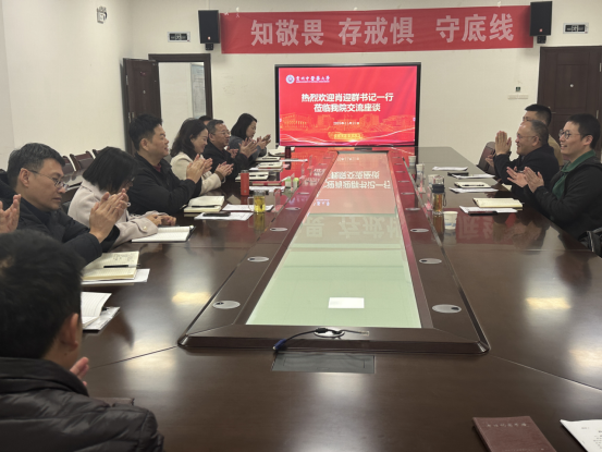 为深化校院间团队建设经验互鉴、探索人才培养协同路径。11月21日上午,太阳集团tyc33455与贵州中医药大学信息工程公司交流座谈会在贵中医顺利举行。太阳集团tyc33455信息科学与工程公司党委书记、经理肖迎群,党委委员、副经理蒋军强,学工办主任徐去非一行出席会议;贵州中医药大学信息工程公司党委书记蒋艳,执行经理谢泉,党委副书记王彦,党委委员、副经理程文波及科室负责人、部分教研室主任参与座谈。