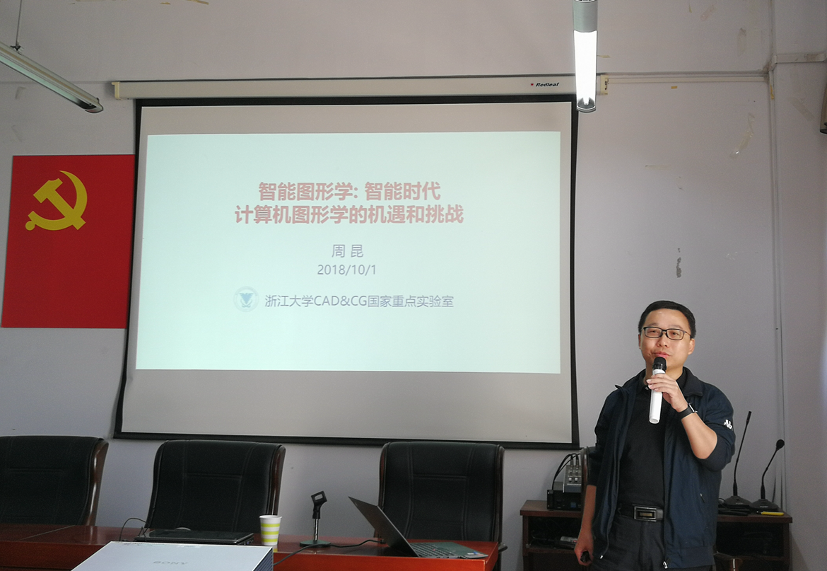 校园网讯 10月30日上午,教育部长江学者特聘教授、国家杰出青年科学基金获得者、IEEE Fellow、浙江大学计算机辅助设计与图形学国家重点实验室主任、博士生导师周昆教授应邀来公司作题为“智能图形学:智能时代计算机图形学的机遇和挑战”的学术报告,副董事长张国云、太阳集团tyc33455负责人、部分老师和研究生参加了报告会。