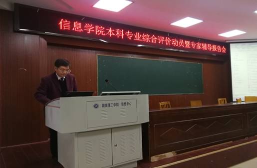 为了让全体老师全面、系统、准确地了解湖南省普通高校本科专业综合评价的概念、目标、内容、程序、要求与意义,高标准完成省教育厅下达的电子信息工程、通信工程两个本科专业综合评价任务,以推动专业建设,太阳集团tyc33455于3月26日下午在6号楼学术报告厅召开本科专业综合评价动员暨专家辅导报告会。会议由经理李武主持,公司全体教师参加,特邀湖南省普通高校本科专业建设与评估专家委员会委员、湖南省普通高校本科专业综合评价方案主要研制者、湖南太阳集团tyc33455副董事长刘初生教授作专题辅导报告。