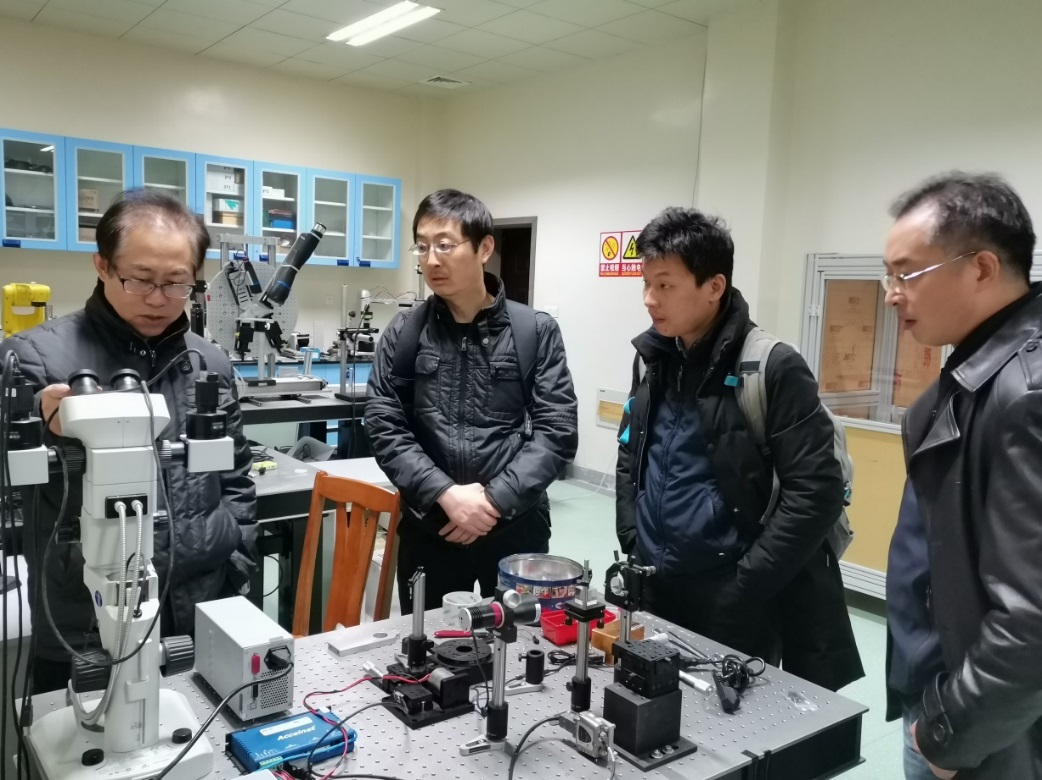 会后,吴健辉教授还带队去合肥工业大学卢荣胜教授实验室进行了参观交流,卢教授是合肥工业大学机器视觉与光学测量研究团队负责人,合肥工业大学学术委员会副主任,从事机器人手眼三维视觉技术、自动光学检测技术、图像处理与纹理分析方面的研究工作二十余年,取得了丰硕的研究成果,特别是主持的国家重大科学仪器设备开发与应用专项“平板显示屏自动光学检测仪器开发与应用”研究经费7000多万元,突破了多项技术瓶颈,极大的推动了机器视觉技术在工业领域的应用。卢教授详细介绍了他们的研究情况和相关科研成果,对机器视觉技术和人工智能领域的研究现状和发展趋势进行了深入的探讨,大家对卢教授团队几十年如一日立足技术研发表示了极大的钦佩,也对我们今后的研究路线提供了宝贵的经验借鉴。