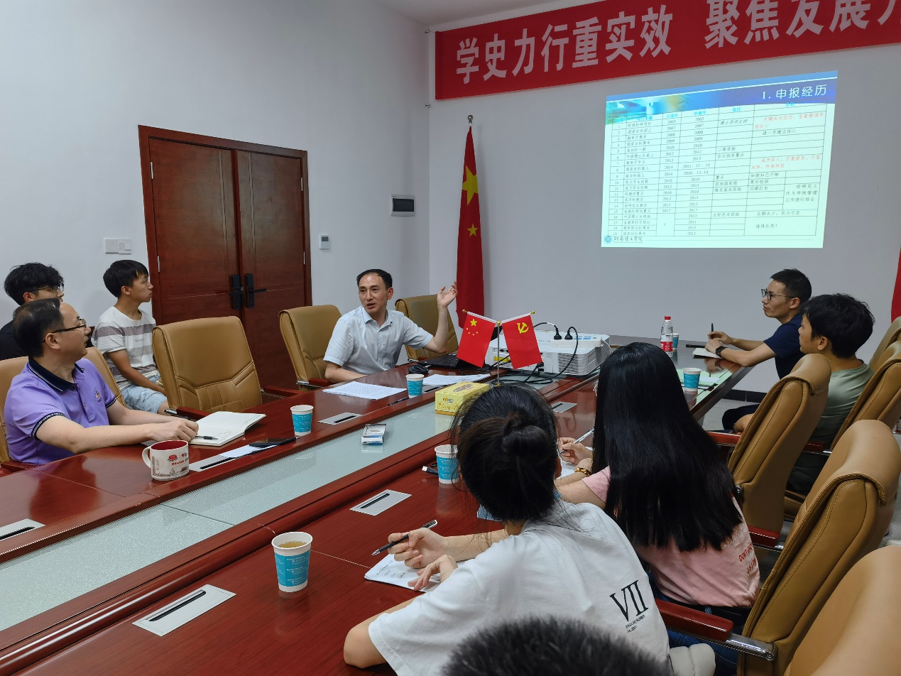 会上,邓惟滔、刘立志、孙树平等三位博士先后就自己的项目申请书与在座的各位老师进行了充分交流,李武教授从项目选题、立项依据、创新点等方面进行了有针对性的指导。