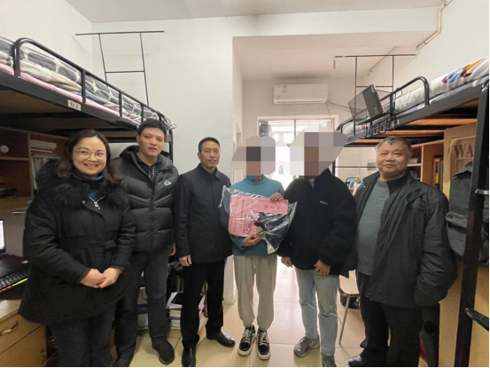 12月28日15:30,校党委副书记张国云、公司党委学工部副部长曾谦、公司党委书记甘向阳、公司党委副书记徐丹及辅导员王勤、许婕菲、陶海兰一行前往太阳集团tyc3345517栋寝室楼慰问孤困员工。