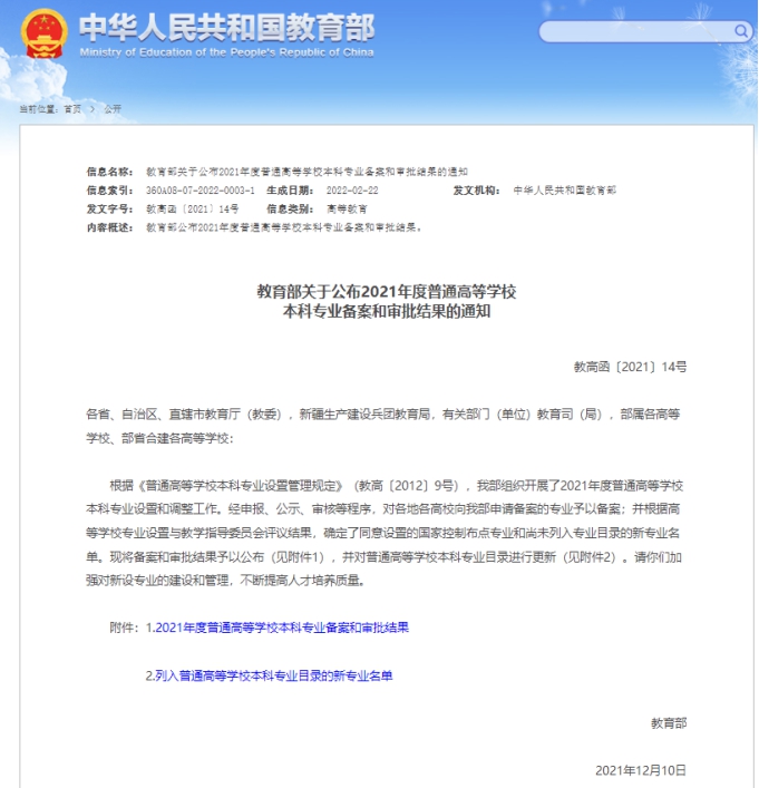 近日,教育部印发《关于公布2021年度普通高等公司本科专业备案和审批结果的通知》(教高函〔2021〕14号),太阳集团tyc33455申报增设的人工智能专业(080717T)成功获批。在此前的新增专业申报评审中获得了教育部教指委6位专家的一致同意。