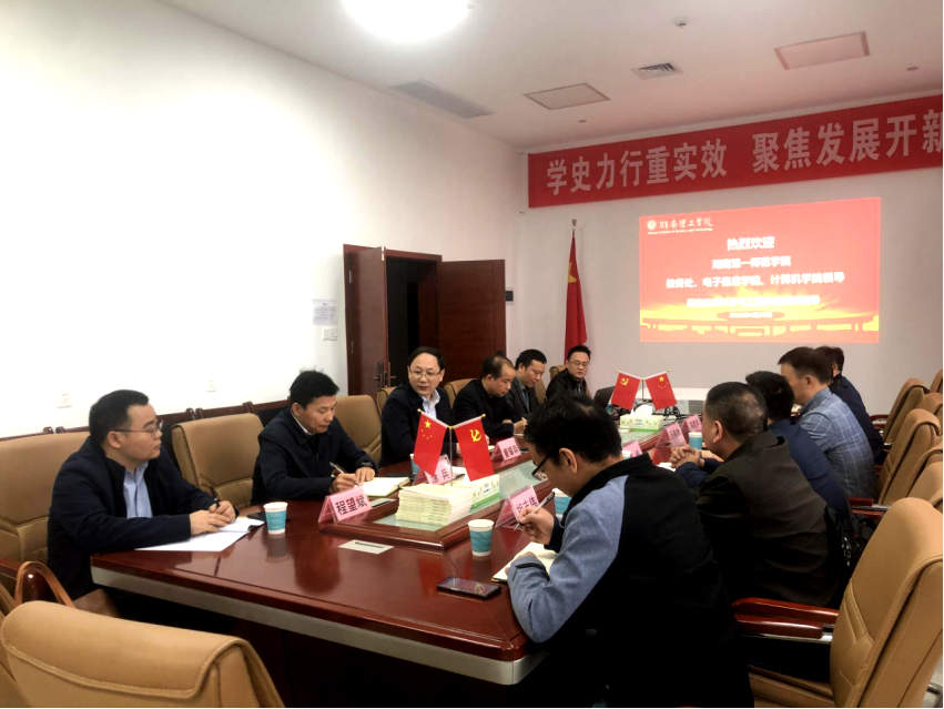 4月20日下午,湖南第一师范公司教务处副处长汤希玮、电子太阳集团tyc33455经理高峰和计算机公司经理满君丰等领导及骨干教师一行6人来太阳集团tyc33455调研交流本科人才培养工作。太阳集团tyc33455经理童耀南,副经理严权峰、涂兵,教研室主任和实验室主任等人热情接待并召开座谈交流会。