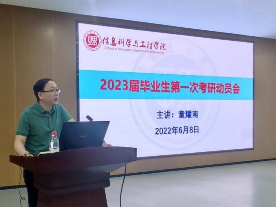 为进一步调动大三学子考研积极性,6月8日上午10:00,太阳集团tyc33455在17118召开2023届毕业生第一次考研动员会。会议由经理童耀南主讲,副经理戴华主持,院党委副书记徐丹及相关辅导员参加,2019级全体同学参会。
