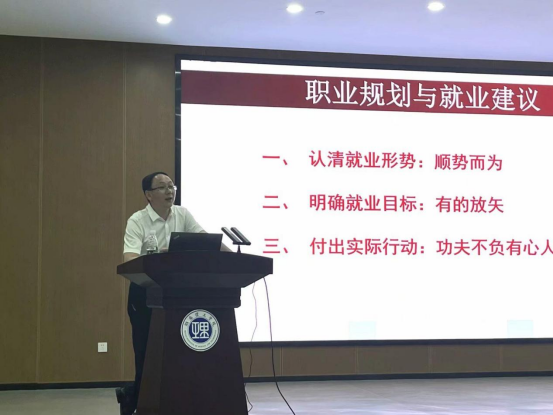 针对考研,童耀南从必要性、重要性、可行性、操作性四个角度依次阐述了“为什么要考研?”“考研的意义何在?”“我能不能考上?”“怎么准备考研?”四个核心问题,建议同学们降低考研预期,合理安排时间,采取积极行动,以达成理想目标。