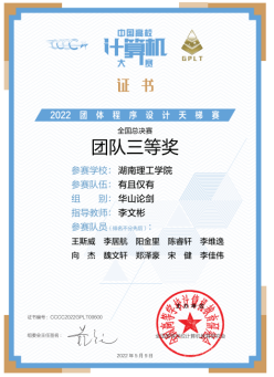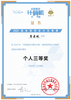 近期,第7届中国高校计算机大赛——团体程序设计天梯赛顺利结束,太阳集团tyc33455计算机类等本科专业生喜获全国团体铜奖1项和全国个人铜奖2项。