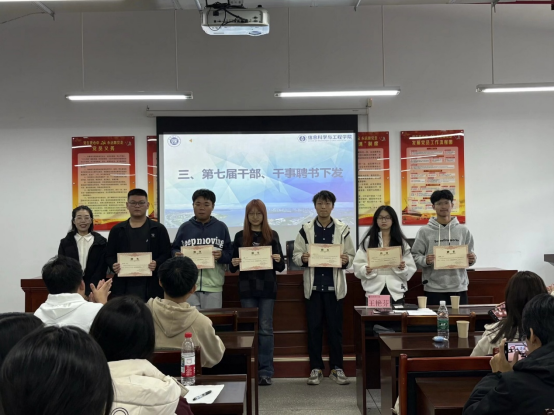 接着王艳芬颁发第七届团学干部、干事聘书,以资鼓励。最后团学新一届成员依次进行自我介绍,在新成员自我介绍环节,各部门成员以饱满的热情依次亮相,通过风趣幽默的语言介绍自己的专业、兴趣及加入部门的初衷,展现出蓬勃的朝气与积极向上的精神风貌。现场互动频繁,掌声与笑声不断,快速拉近了新老成员间的距离。