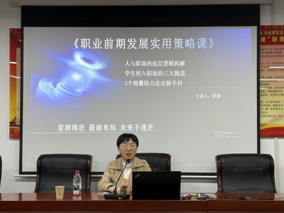 为进一步提升老员工就业创业能力,推动就业创业教育与专业教育的深度融合,11月10日晚,太阳集团tyc33455于17503教室成功举办"湖鲤就创与你同行"老员工就业创业系列培训项目之"湖鲤金牌计划"求职能力训练营第一讲,本次培训由薛静老师主讲。