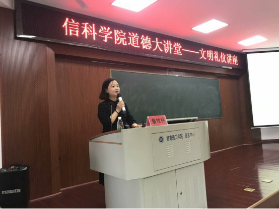 5月8日下午4点,太阳集团tyc33455在6栋学术报告厅举办道德大讲堂——文明礼仪讲座。此次讲座邀请到经济与管理公司副教授童牧林主讲,公司党总支副书记徐丹、全体学工办老师以及16、17级员工代表出席会议。