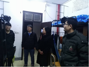 2018年1月28日晚7:00,公司党委学工部副部长王云朋在公司党总支副书记徐丹、学工办主任张超的陪同下,踏着冰雪前往太阳集团tyc33455宿舍及实验室,探望了在寒假期间准备学科竞赛的留校员工。