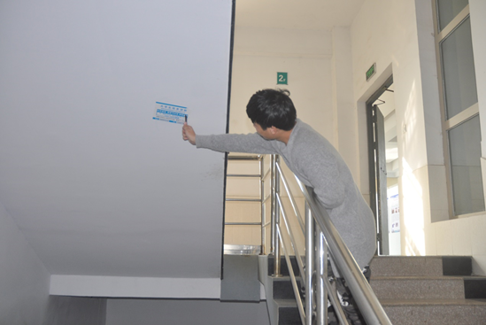时间未到,干部干事们便全副武装在16栋2楼大厅集合。团总支副书记贾西贝按人员进行分配,八人一组,一组负责两层楼。