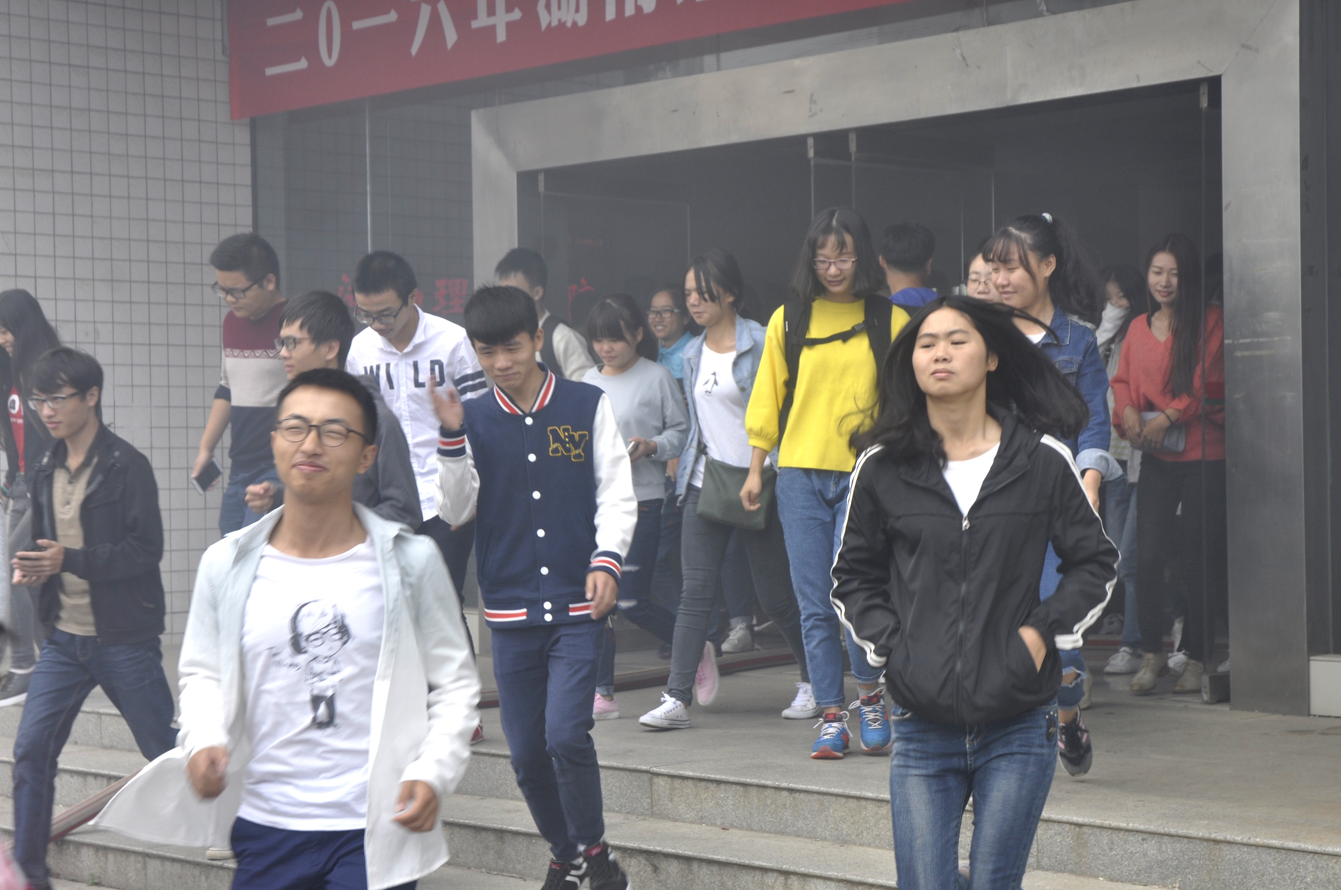 新生们有序的沿着逃生通道离开现场,消防士兵们迅速搭起云梯,充好气垫,开始灭火工作并及时疏散人群。演习过后,新生们在云梦集合。岳阳武警消防司令部战训参谋彭艳波针对什么是火灾、遇火灾如何快速有效的报警、如何逃生发表讲话。全国十佳消防卫士刘达京同志为我们讲解了灭火器的使用并现场演示。