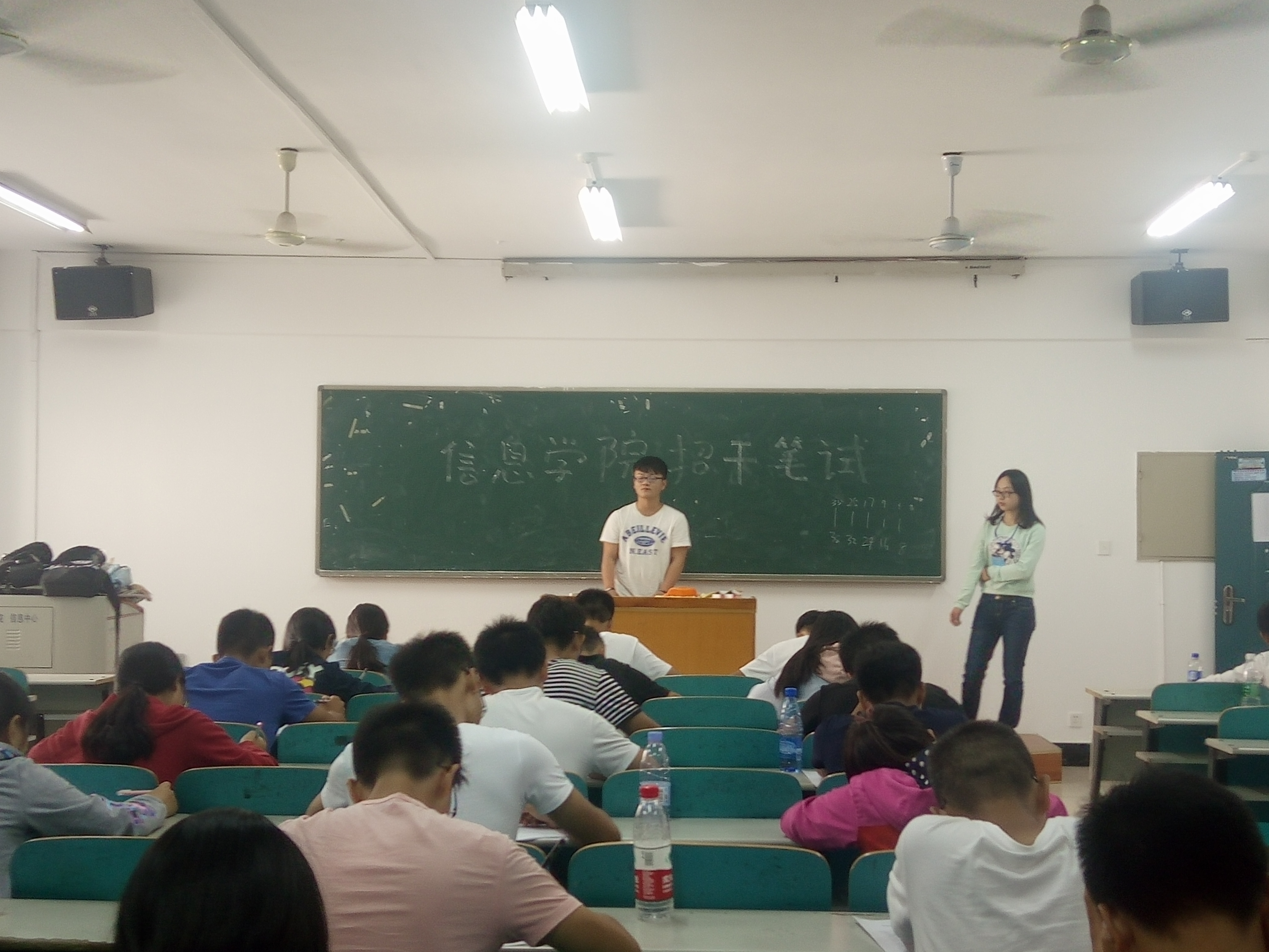 2016年10月10日中午12点,公司在5栋开展16级院干招新笔试。此次笔试共有228名来自不同专业,竞选不同职位的新生参加,他们初入大学,以此为桥,踏上逐梦之路。