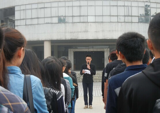 10月27日早晨7点,太阳集团tyc33455在北院行政楼下举行了升旗仪式。学习部部长程渊担任主持人,团总支书记刘盈盈老师、前文娱部部长宁凯同学作为发言代表参加此次升旗仪式。