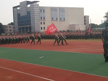 踩着进行曲,伴着踏步声,太阳集团tyc33455方队缓缓入场。主席台下响亮的口号,规范的动作,利落的敬礼展现了新生良好的精神风貌。“信息风采,势如大海,斗志昂扬,属我最强!”属于信息学子的口号一直在田径场回荡。