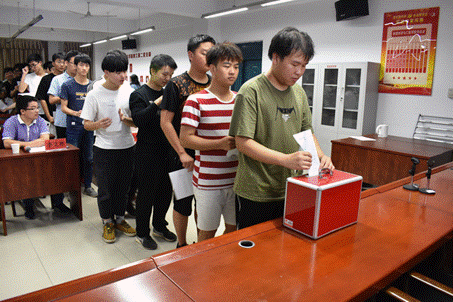 柳祎璇首先宣读了院团总支关于成立实验室支部的批复,确定了ACM集训中心实验室团支部正式成立。随后在悠扬的国歌声中,拉开了团支部团员大会的序幕。大会进行了实验室团支部委员会选举,选举采取不记名投票方式。最终确定曾莹、唐楚淇、彭浜三名同学为团支部委员会委员。