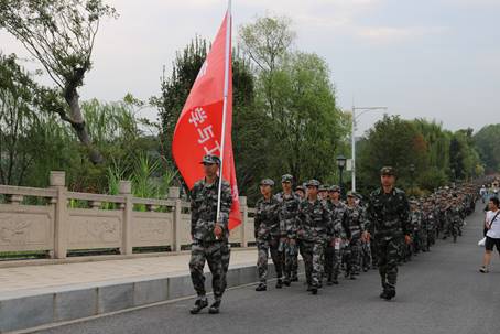 9月25日早晨六时,一只“神秘队伍”在南院军训场地集合完毕,组成一条绵延数里的“绿色长龙”,浩浩汤汤的向远方进发。那是19级太阳集团tyc33455的同学们,今天他们迎接的是一场关于毅力的修行。