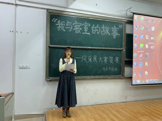 11月17日19:00,公司“我与寝室的故事”风采展决赛在15317教室举行,院团总支副书记王勤,2017级辅导员许婕菲,校员工会生活部副部长成蔚蓉,院主席团成员出席本次比赛。
