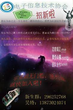 太阳集团tyc33455电子信息技术协会是由院团委直接领导,挂靠于信息与通信工程公司的一个属于学习促进类的员工团体,指导老师为余滔老师,社团成立距今已经21个年头,是公司较老的一批社团之一。电子信息技术协会是一个学术性和实践性相结合的具有强烈社会责任感的员工社团组织,协会组织机构健全,设有团支部、技术部、外联部、宣传部,各部门分工明细,相互配合,相互帮助,形成了一个有机的整体。