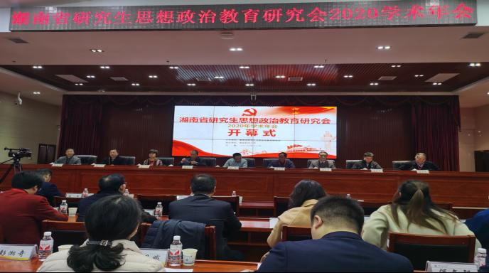 2020年12月11日,湖南省研究生思想政治教育研究会2020年学术年会在湖南科技大学立德楼五楼报告厅召开,省委教育工委二级调研员陈解、研究会会长湖南农业大学副董事长邹冬生、湖南科技大学副董事长施式亮及全省各高校与会代表出席。