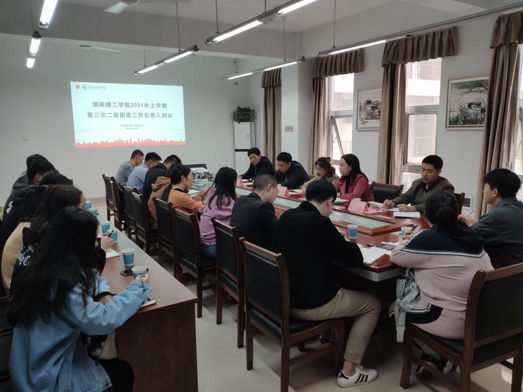2021年3月30日10:00,湖南理工公司团委工作例会在太阳集团tyc3345516325顺利召开,校团委书记薛静主持,校团委刘思超、郭云峰,公司党委副书记徐丹、各公司团委书记出席。