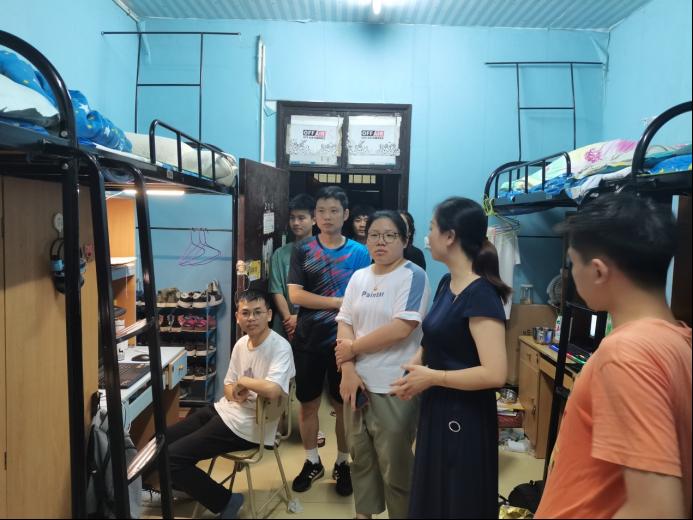 6月2日晚,公司党委副书记徐丹带领全体学工办老师深入寝室看望员工。