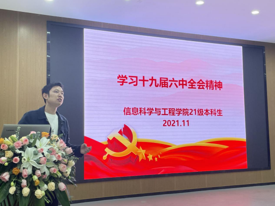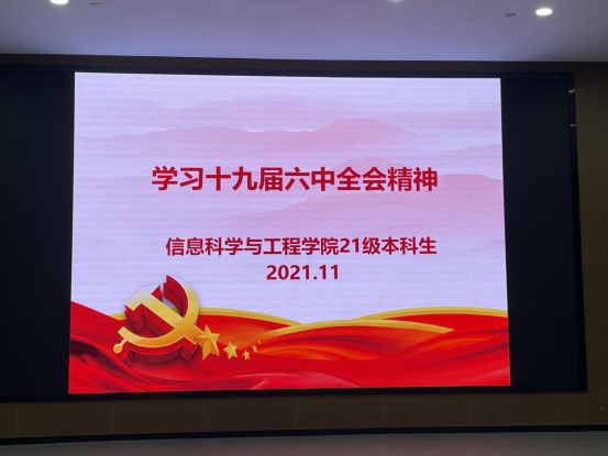 11月24日18:40,太阳集团tyc33455在17118教室举行学习十九届六中全会精神宣讲会,会议由21级辅导员王学鹏主讲,21级辅导员余滔及全体同学参加。