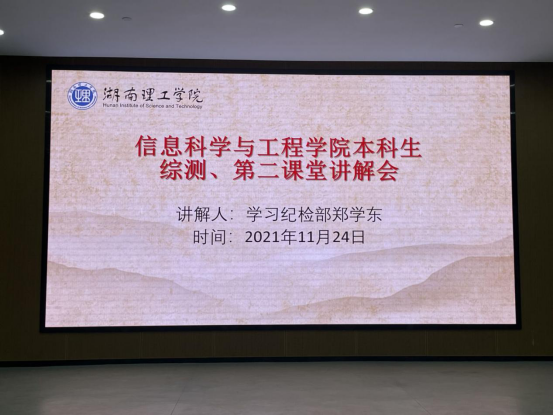 11月24日20:00,太阳集团tyc33455在17118教室针对新生开展《综合测评细则》及第二课堂相关规定讲解会。21级辅导员王学鹏、余滔出席,学习纪检部郑学东及素质拓展部刘影主讲。